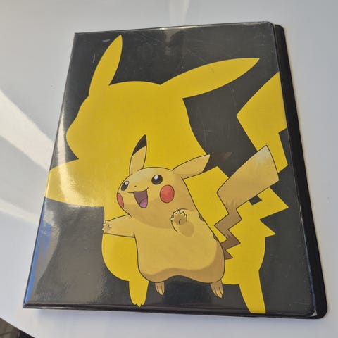 Pokémon Trading Card Game -korttikansio, jossa on Pikachu-kuvitus. Kansiolla voi säilyttää ja järjestää Pokémon-kortteja. Sopii keräilyyn ja korttien suojaamiseen.