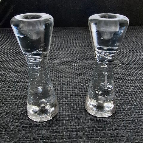 Iittala koriste-esineet, valmistettu kirkkaasta lasista. Kolme erikokoista ja muotoista lasiesinettä, joissa ilmakuplia sisällä.