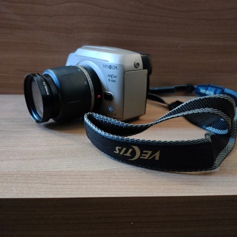 Toimiva Minolta filmikamera. L 10cm, K n. 6,5cm, S n. 3,5CM