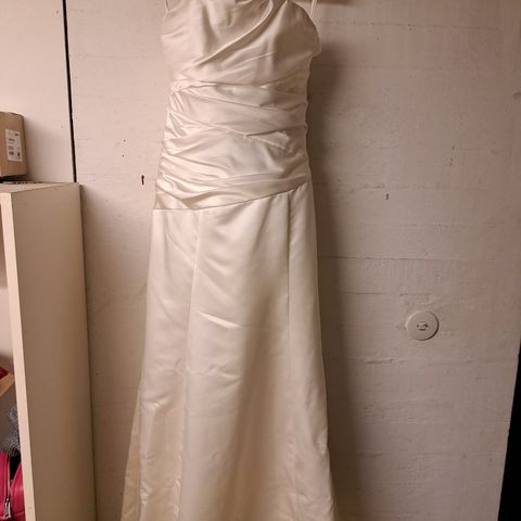 Koosta on vaikea sanoa. Puvun koko on tavallista väljempi joten sopii hyvin monen kokoisille morsiamille.