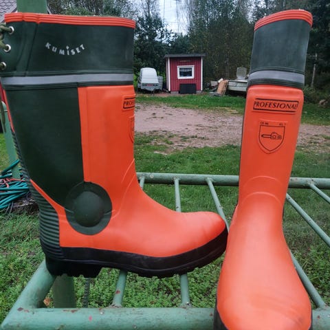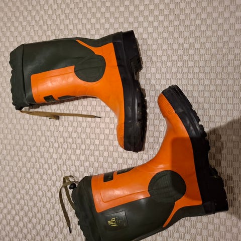 Myydään kuvanmukaiset turvapohjalliset metsurin kumisaappaat. Luokka 1, koko 47