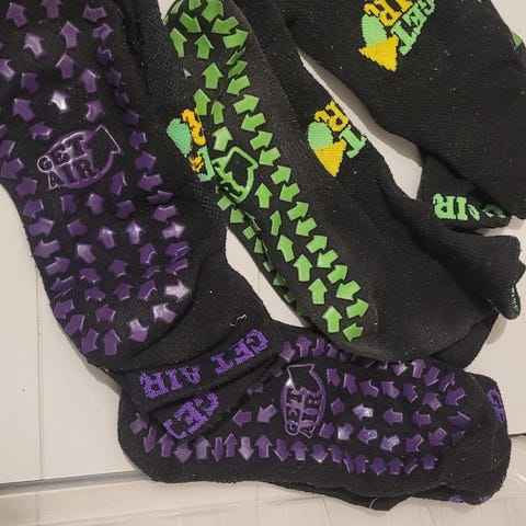 Myynnissä Rush trampoliinisukat,oranssin väriset.