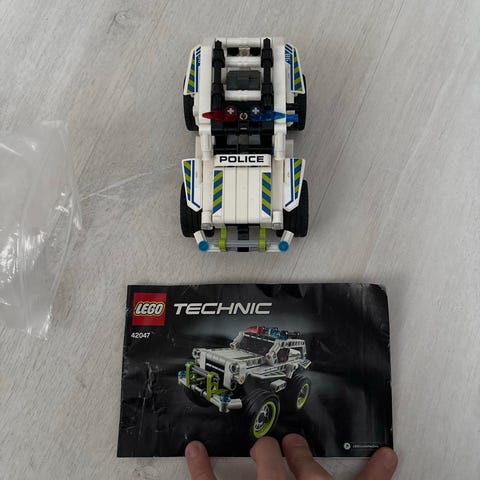 LEGO Technic 42091 Kilpa-auto -rakennussarja. Vedettävä, eli kulkee itsekseen taaksepäin vetämällä. Kaikki osat ja ohjeet tallessa.