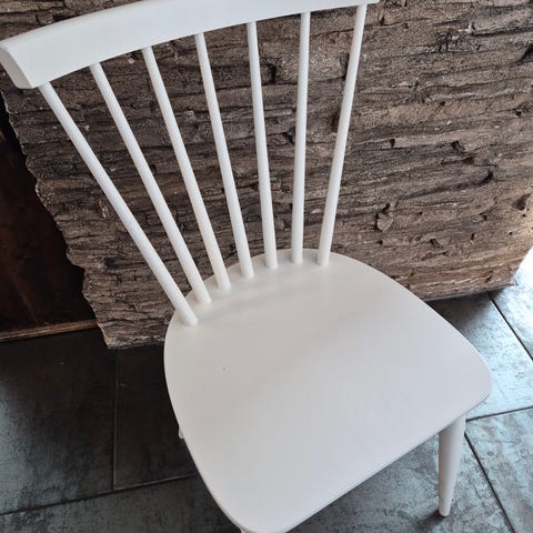 Pinnatuoli 6 kappaletta ja ruokapöytä . Tuolien istuimet verhoiltu raidallisella kankaalla. Kalusteet soveltuvat ruokailutilaan.