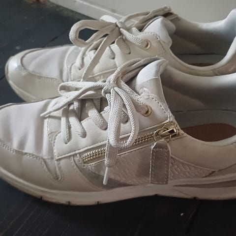 Fasletics by Tamaris. Removable footbed eli pehmeä pohja muokkautuu jalan mukaan. Kevyet, valkoiset. Laput kiinni, maksoivat 79,95 euroa.