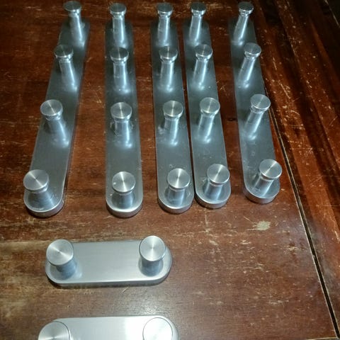 Kuvien mukainen jonkun reunan tms. yli asetettava koukkurivi naulakko metallinaulakko