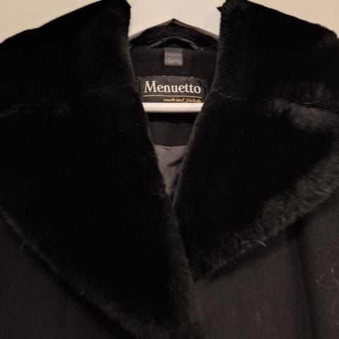Naisten vintage villakangastakki, turkisvuori. Valmistaja Malliaitta. Ka-ka 55 cm, hartialeveys 43 cm, hihan pituus 59 cm ja olkapäästä helmaan 94 cm.