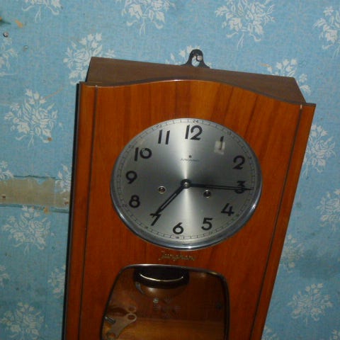 Ei täydellinen, lamppu toimii (kuvissa siksi nykyajan lamppu kokeilun vuoksi) ja lasi on ehjä. Mekaniikaa en lähde kokeilemaan näin vanhassa kellossa tietämättömänä.