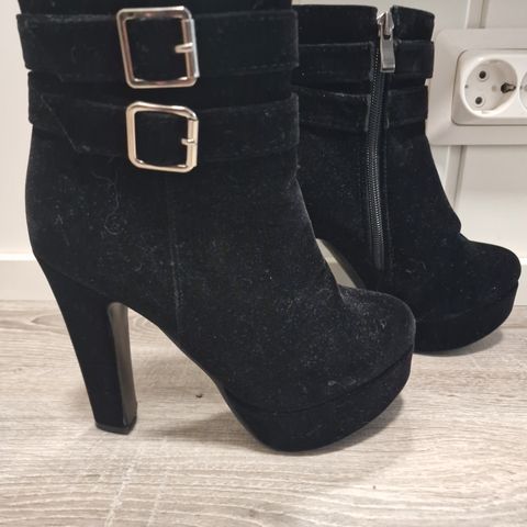 Myydään kauniit, käyttämättömät, siniset nilkkurit. Ehjät ja yleisilme on erittäin siisti. Kaunis kiiltävä pinta, vetoketjut sisäsivussa. Koron korkeus noin 8,5cm.
