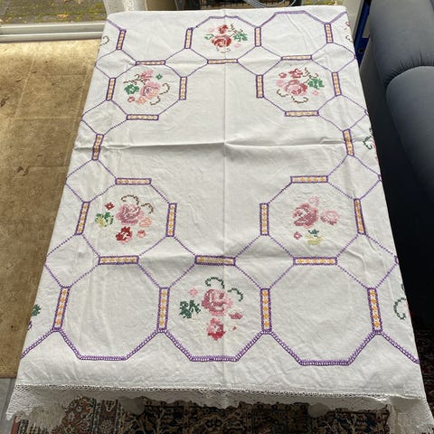 Puolipellavainen käyttämätön ihana pöytäliina. Koko 140x160