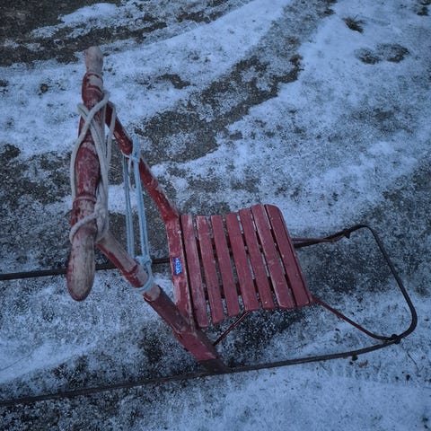 OK kuntoinen potkukelkka. Tee tästä vaikka pilkkikelkka tulevan talven koitoksiin.