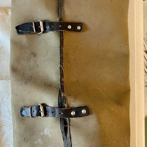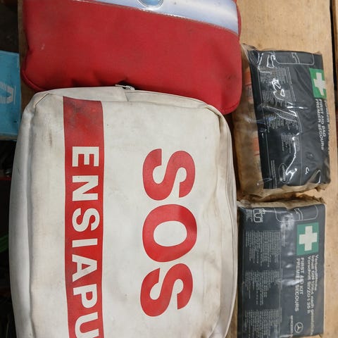 Hyvin säilynyt neuvostoaikainen ensiapupakkaus oletettavasti koskemattomalla sisällöllä dokumentteineen ja lääkkeineen.