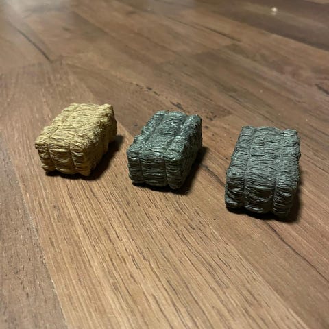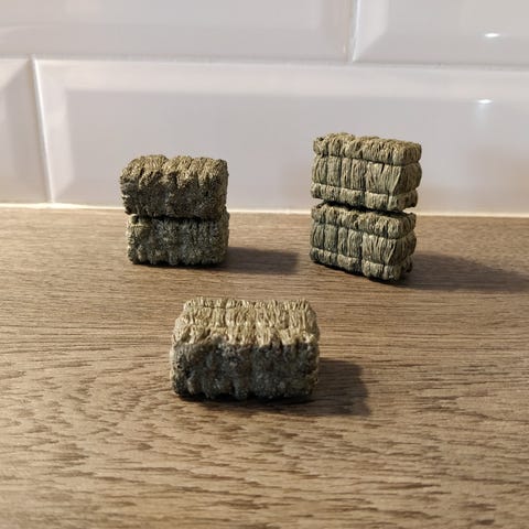 Heinäpaalien koko on noin 5,5cm x 2,5cm x 2,5cm