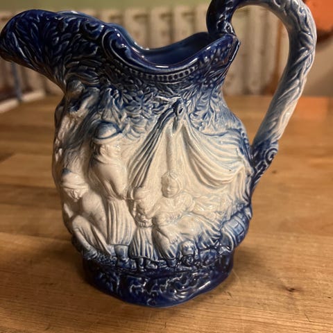 Burleigh Ironstone Staffordshire Englantilainen sininen posliini kannu. Made in England. Ehjä ja siisti. Voidaan lähettää postiautomaatin kautta.
