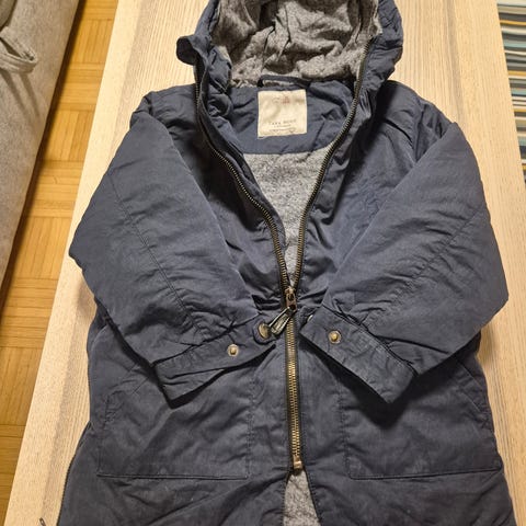 Zara lasten takki koko 110. Värivirhe nepparin kohdalla, menee piiloon. Hyvä käytetty kunto