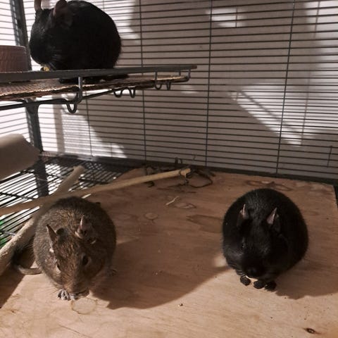 Kolme noin parivuotiasta deguveljestä etsivät uutta lajiin perehtynyttä kotia pitovaikeuksien vuoksi. Kaikki ovat kilttejä, kesyjä ja käsiteltävissä olevia.