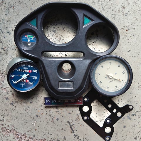 Erinäisiä partikkeleita. Californian hyvät etujarrulevyt, T5 ilmanputsarikotelo joka myös muissa malleissa, T5 katkaisijat kahvat jarrupääsylinteri, Californian nokka-akseli KC, laturinkoppa, Brembon jarrusatuloita purettuja mutta kunnostuskelpoisia, BMC:n ilmanputsari ja kehys Californiaan, mittaristo V65 yms., laskuituiset sivukopat cafe racer. Kysy!