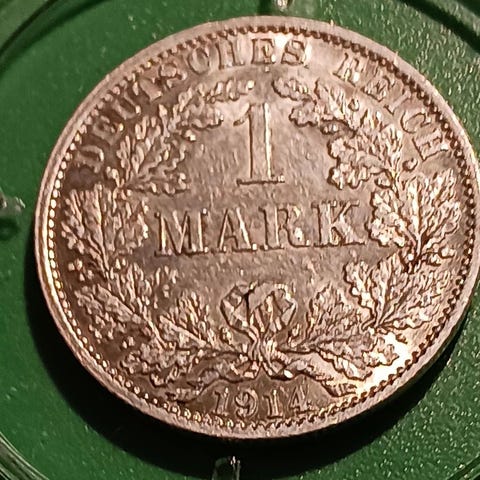 Saksan keisarikunta 1914-A- 1 Mark -- Korkealaatuinen 900 hopeakolikko.