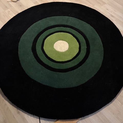 Upea käsinneulottu pyöreä villamatto ihana täysin villaa!