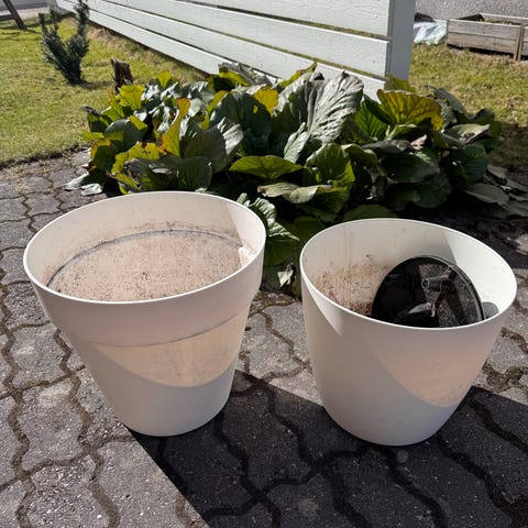 Valkoinen muoviruukku HAKU Espoon Lintuvaarasta