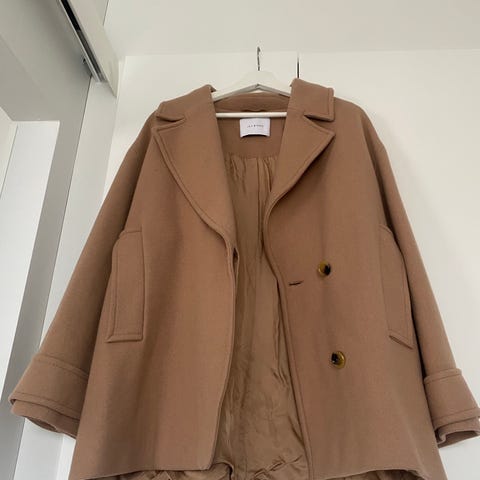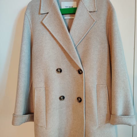 Myydään hyväkuntoinen ivy&oak merkkinen luonnonvalkoinen villakangastakki koko 34.