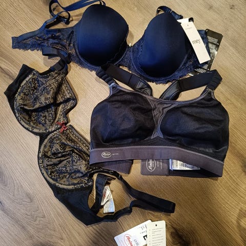 Mustat Evelace, kaarituet, ei toppauksia, 75C, käytetty alle 10 kertaa. Ruskeat Marie Jo, kaarituet, kevyt toppaus, käyttämätön, 75C. Tummansininen Primadonna, kaarituet, ei toppauksia, 75C, käyttämätön. Hp 30€.