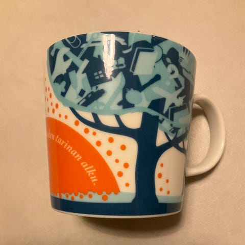 Arabia/Rörstrand kuviollinen posliinikuppi, sininen