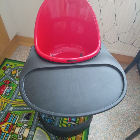 Myydään käytetty Ikean Blåmes syöttötuoli/tarjotin. Tuoli maalattu kiiltävällä/mustalla maalilla sillä oli käytössä maalipinta päässyt kulumaan. Aivan kaikkia käytönjälkiä ei saatu poistettua, kuten kuvassa näkyvä kosteudesta johtunut turpoaminen, mutta se ei haittaa käyttöä. Lisäksi vyö puuttuu mutta uusi omistaja voi hankkia vyön tai pehmusteen tuolille. Pöytä on hyvässä kunnossa ja kiinnitys pysyy hyvin.