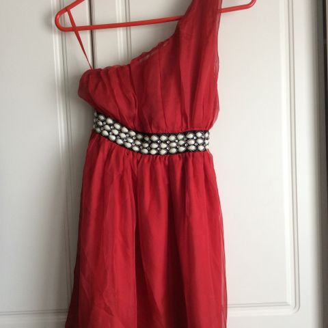 Kaunis kimallemekko. Hieman iso mallinukelle,ei pääse oikeuksiinsa. Takana "timantti"vetoketju. Rypytetyt olkapäät. Pituus 85cm. Kai-kai 45cm. Kangas joustaa.