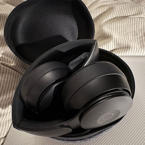 Beats kuulokkeiden musta säilytyskotelo. Kunto hyvä. Akunkestokin on hyvä. Olen ladannut nämä jonkun aikaa sitten ja akkua on vieläkin jäljellä.