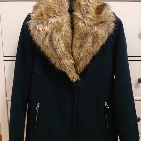 Zara Talvitakki mustassa värissä, koko S. Takissa on kiinnityksessä soljet ja napit, kaksi etutaskua, sekä hihansuissa napit. Materiaali on paksumpi ja sopii talvikäyttöön. 75% villaa. Kestävä ja ryhdikäs materiaali.