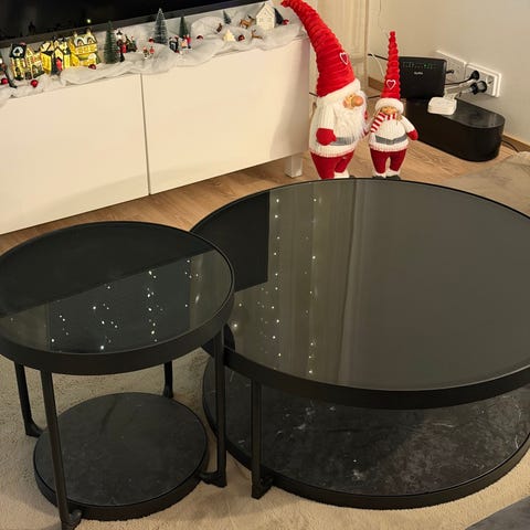 Ikea Frötorp sohvapöytä. Päällinen tummaa lasia, alaosa musta (vaneria).