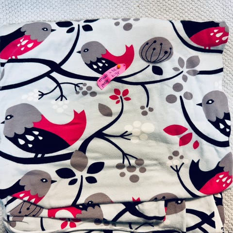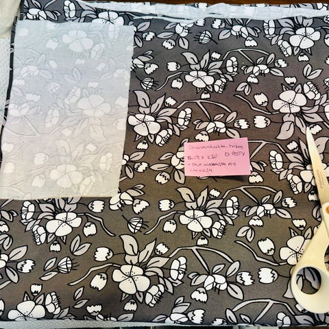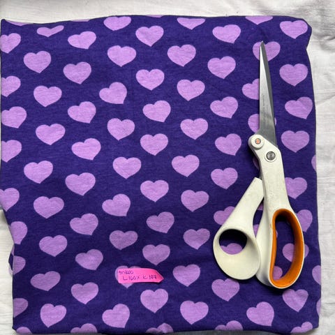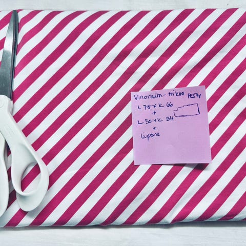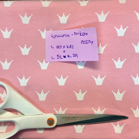 Apila -aiheinen, läpivärjätty vaaleanpunainen, trikoo -kangaspala. L82 x K103 + L53 x K65 cm (yhtenäinen pala). Kankaan mallista saa halutessaan kuvan.