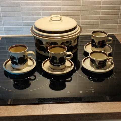 Hyväkuntoiset Ruija uunivuoka ja maitokannu