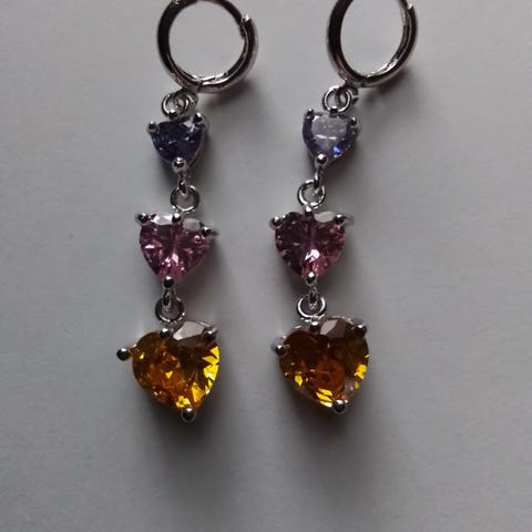 Superkauniit korvakorut vihreän ja liilan värissä, kukkien keskellä kimaltavia korukiviä, pituus koukun kanssa 6,5cm. Uudet.