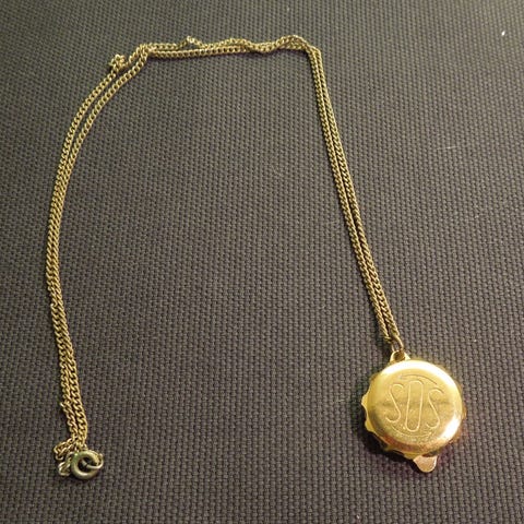Käytetty, aukaistavan riipuksen toiseen osaan kaiverrettu edellisen käyttäjän toimesta numeroita (oletettavasti joku hänelle tärkeä numerosarja)