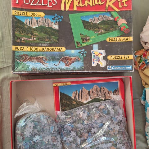 Palapeli, jossa on kylämaisema. Palapelin koko on 88 x 23 cm, valmistettu Englannissa. Sisältää 1500 palan kokonaisuuden. Yritetty muutaman palan verran rakentaa, jäi kesken eli kuin uusi, kaikki palat tallessa. Hinta 6 euroa, tai 9 eurolla kaksi myynnissäni olevista palapeleistä.