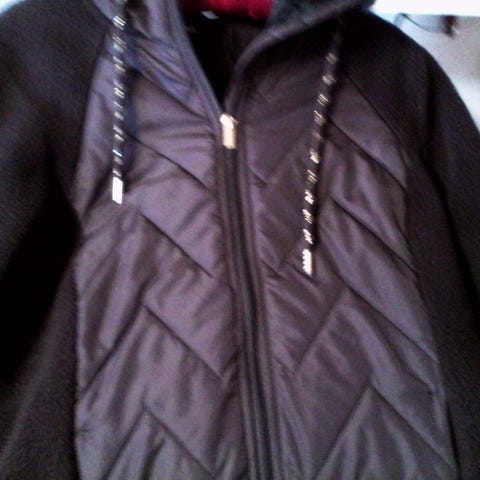 Vaalean kirjava kevyempi, vuorillinen toppatakki