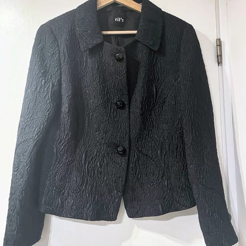 Musta laadukas Rils bleiseri. Ei uudelle kalpene. Löytyy Porvoosta, kulkeutuu omien menojen mukana Helsinki Puistolaan. Pikkujoulut. Pikkutakki. Tämä on ihan tasaisen syvämusta (kamera ja/tai aurinko valehtelee eli haalentaa kuvissa) Postitus +8€