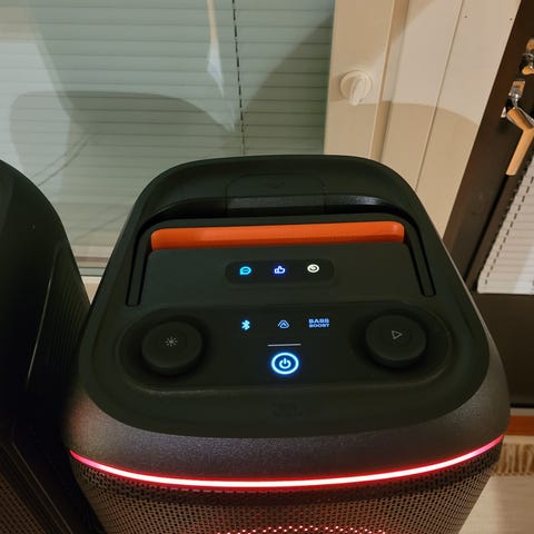 JBL PartyBox 710 on Bluetooth-kaiutin, joka tarjoaa voimakkaan äänen ja monipuoliset liitäntämahdollisuudet. Kaiuttimessa on musta väritys ja se soveltuu erilaisiin tilaisuuksiin, kuten juhliin ja tapahtumiin. Laite sisältää hallintapaneelin, jossa on äänenvoimakkuuden ja muiden toimintojen säätimet.