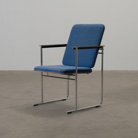 Yrjö Kukkapuron tyyylikäs ja minimalistinen Ateljee-nojatuolin on ajaton valinta mihin tahansa sisustukseen. Puinen runko, metalliset jalat ja musta kangasverhoilu.