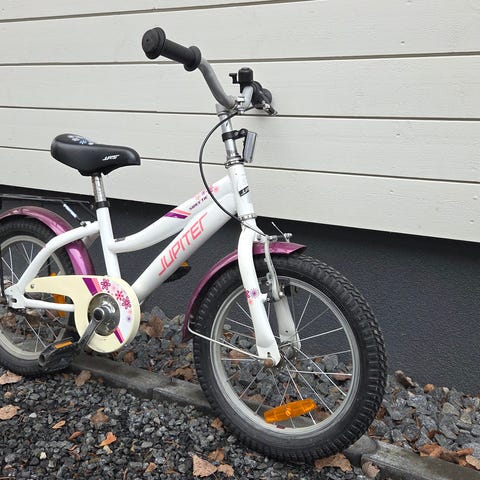 Hyvä kuntoinen käytetty polkupyörä tuuma koossa 16” ollut meillä 105-120cm lapsella (4-6v).