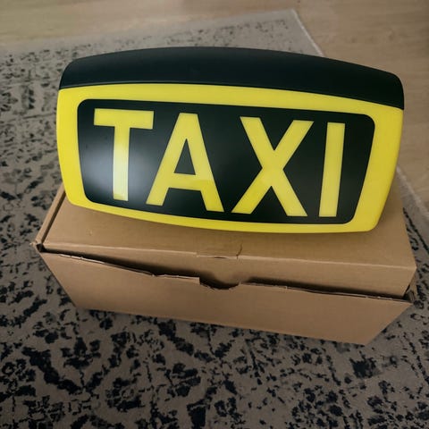 I'm The Best Taxi Driver -tarra koriste, jossa musta ja keltainen väritys. Koriste on muotoiltu kyltiksi ja sopii esimerkiksi auton sisustukseen tai lahjaksi taksinkuljettajalle.
