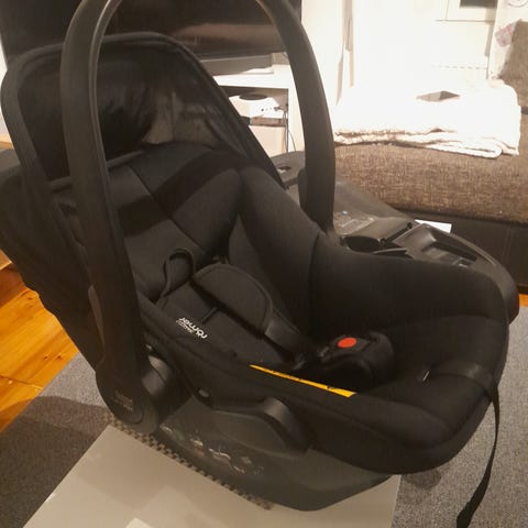 Turvakaukalon valmistuspäivä 2.10.2023. Otettu käyttöön 04/2025. Kaukalolla siis useampi vuosi käyttöikää jäljellä. Väri: musta. Voidaan kiinnittää autoon turvavyön avulla tai muutamalla erilaisella telakalla. Painoraja kaikilla kiinnitystavoilla 13 kg. Mukana istuimen pienentäjä ihan pienelle vauvalle (kuvissa kaukalon sisällä).