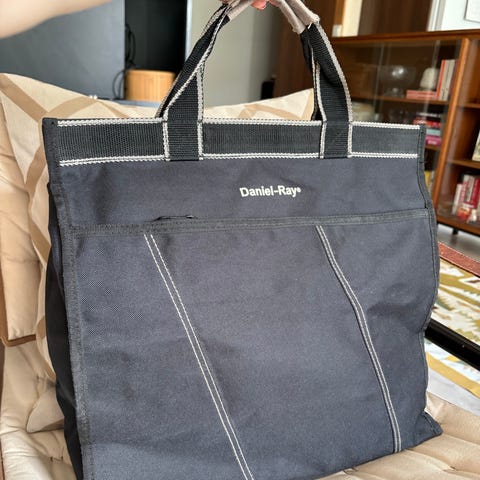 Iso musta kassi tavaroiden roudaamiseen. Vetoketjusuljenta. Hyväkuntoinen, sisällä joitakin tahroja.