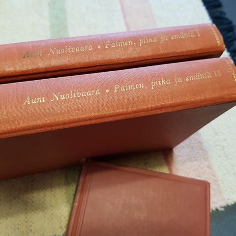 A. Auni Nuolivaara Paimen, piika ja emäntä 1-2 omistajan nimi leikattu molemmista kirjoista pois,Painos 1959. Kansipaperit puuttuu. Sivuja ei tarkistettu. Kirjoja osa 1 ja osa 2 ja myyn molemmat yhdellä kertaa.Hinta 5 e NYT 4 e UUSI HINTA 3 E