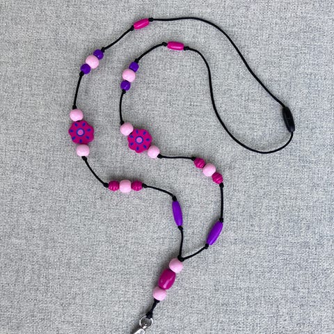 Käsintehty akryylihelmistä ja puuhelmistä. Alkuperäinen suunnittelu. Käyttämätön. Noin 90 cm.