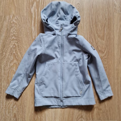 Reima softshell välikausitakki koko 110. Aran värin vuoksi tahraa löytyy useasta kohtaa. Pientä nukkaa ja kulumaa.