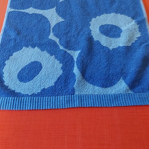 Marimekon raidallinen Rötti pyyhe, 45 x 95 cm. Muutaman kerran ollut pienellä lapsella käytössä. Pehmeä!