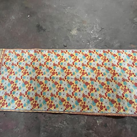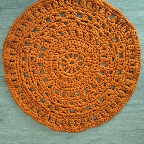 Itse virkattu, käyttämätön harmaa pikkumatto. Paksusta kuteesta tehty.